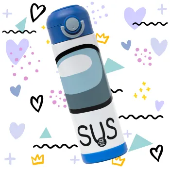 Among US SUS!!!, Children's hot water bottle, stainless steel, with safety straw, BLUE (500ml)