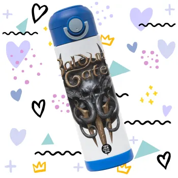 Baldur's Gate, Children's hot water bottle, stainless steel, with safety straw, BLUE (500ml)