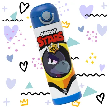 Brawl Stars Crow, Children's hot water bottle, stainless steel, with safety straw, BLUE (500ml)