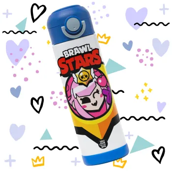 Brawl Stars Melodie, Children's hot water bottle, stainless steel, with safety straw, BLUE (500ml)