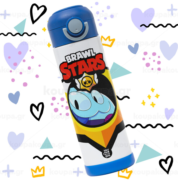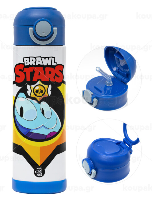 Brawl Stars Squeak, Children's hot water bottle, stainless steel, with safety straw, BLUE (500ml)