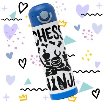 Chess ninja, Children's hot water bottle, stainless steel, with safety straw, BLUE (500ml)