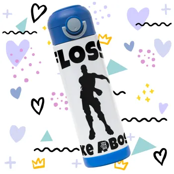 Fortnite Floss Like a Boss, Children's hot water bottle, stainless steel, with safety straw, BLUE (500ml)