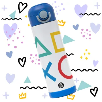 Gaming Symbols, Children's hot water bottle, stainless steel, with safety straw, BLUE (500ml)