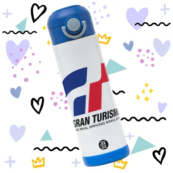 gran turismo, Children's hot water bottle, stainless steel, with safety straw, BLUE (500ml)