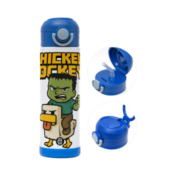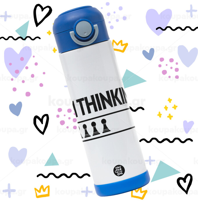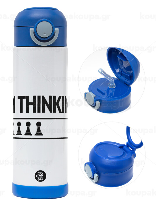 I'm thinking, Children's hot water bottle, stainless steel, with safety straw, BLUE (500ml)