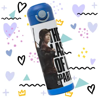 Last of us, Ellie, Children's hot water bottle, stainless steel, with safety straw, BLUE (500ml)