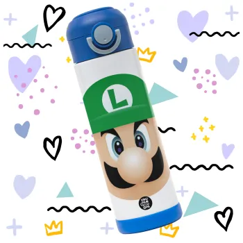 Luigi flat, Children's hot water bottle, stainless steel, with safety straw, BLUE (500ml)