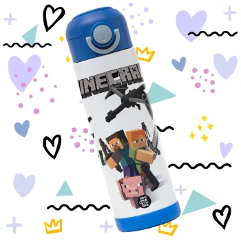 Minecraft Alex, Children's hot water bottle, stainless steel, with safety straw, BLUE (500ml)