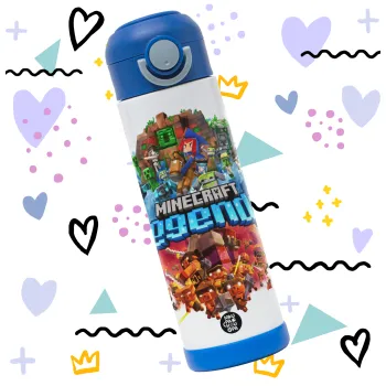 Minecraft legends, Children's hot water bottle, stainless steel, with safety straw, BLUE (500ml)