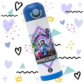 Minecraft Nether Portal, Children's hot water bottle, stainless steel, with safety straw, BLUE (500ml)