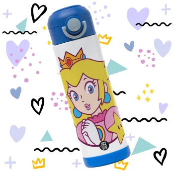Princess Peach, Children's hot water bottle, stainless steel, with safety straw, BLUE (500ml)