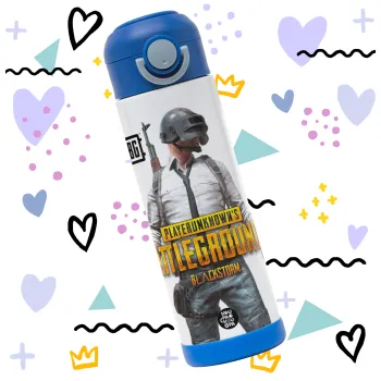 PUBG battleground royale, Children's hot water bottle, stainless steel, with safety straw, BLUE (500ml)