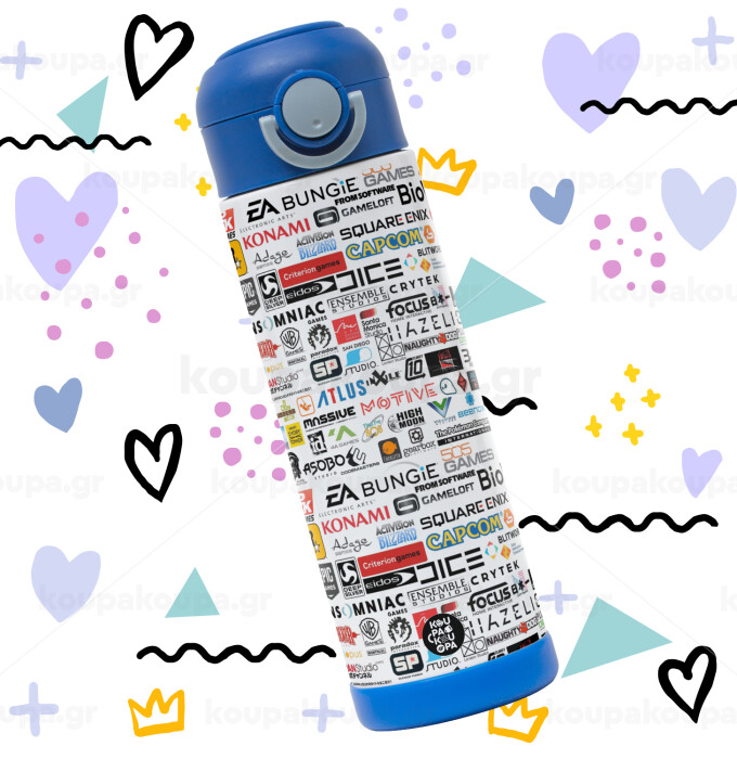 Video Game Studio Logos, Children's hot water bottle, stainless steel, with safety straw, BLUE (500ml)