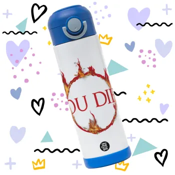 You Died | Dark Souls, Children's hot water bottle, stainless steel, with safety straw, BLUE (500ml)