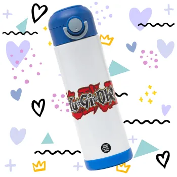 Yu-Gi-Oh, Children's hot water bottle, stainless steel, with safety straw, BLUE (500ml)