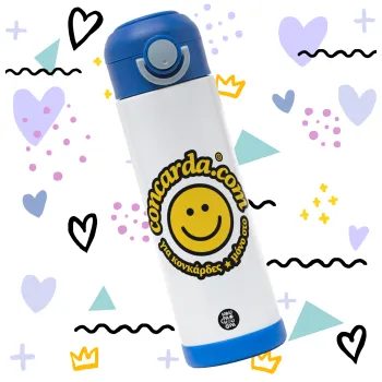 Concarda, Children's hot water bottle, stainless steel, with safety straw, BLUE (500ml)
