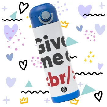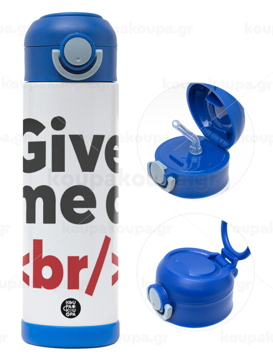 , Children's hot water bottle, stainless steel, with safety straw, BLUE (500ml)