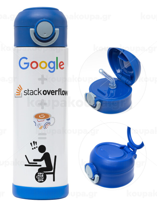 Google + Stack overflow + Coffee, Children's hot water bottle, stainless steel, with safety straw, BLUE (500ml)