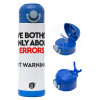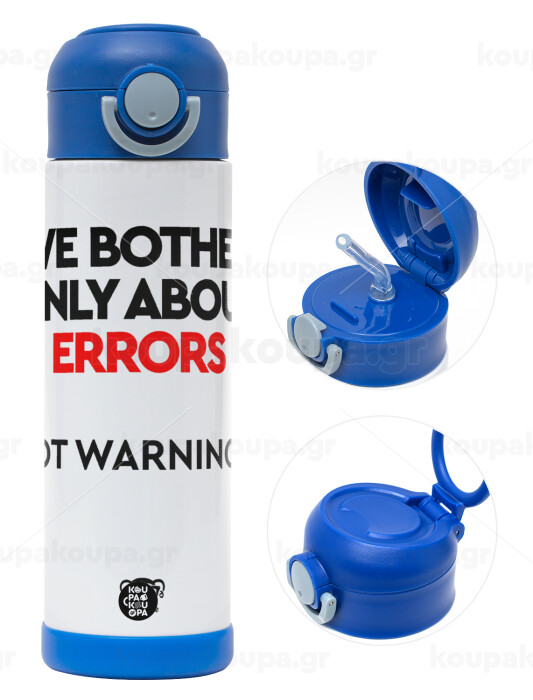 We bother only about errors, not warnings, Children's hot water bottle, stainless steel, with safety straw, BLUE (500ml)