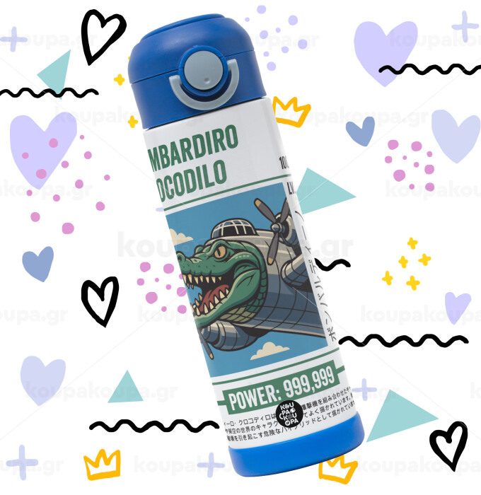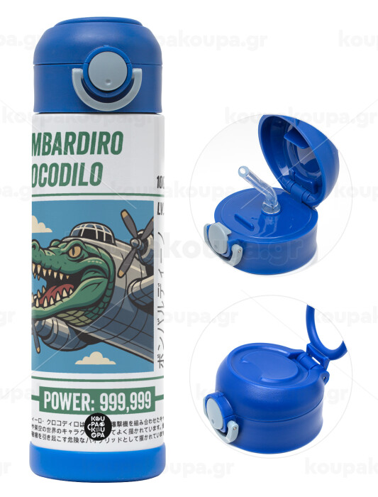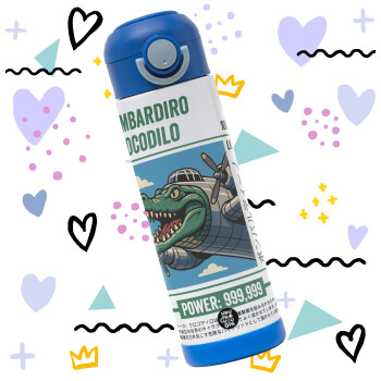 Bombardiro Crocodilo, Children's hot water bottle, stainless steel, with safety straw, BLUE (500ml)