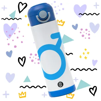 MALE, Children's hot water bottle, stainless steel, with safety straw, BLUE (500ml)