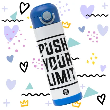 Push your limit, Children's hot water bottle, stainless steel, with safety straw, BLUE (500ml)