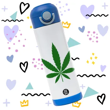 Weed, Children's hot water bottle, stainless steel, with safety straw, BLUE (500ml)