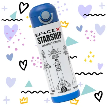 Space X, Children's hot water bottle, stainless steel, with safety straw, BLUE (500ml)