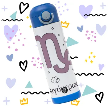 Ζώδια Αιγόκερως, Children's hot water bottle, stainless steel, with safety straw, BLUE (500ml)