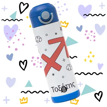 Ζώδια Τοξότης, Children's hot water bottle, stainless steel, with safety straw, BLUE (500ml)