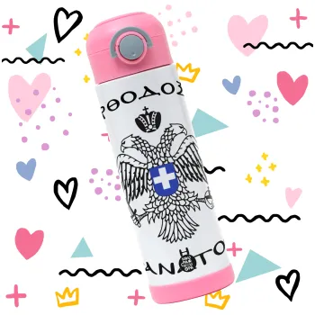 Ορθοδοξία ή Θάνατος, Children's hot water bottle, stainless steel, with safety straw, PINK (500ml)