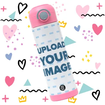 Upload your logo, Children's hot water bottle, stainless steel, with safety straw, PINK (500ml)