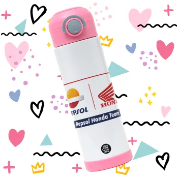 Honda Repsol Team, Children's hot water bottle, stainless steel, with safety straw, PINK (500ml)
