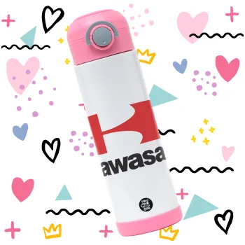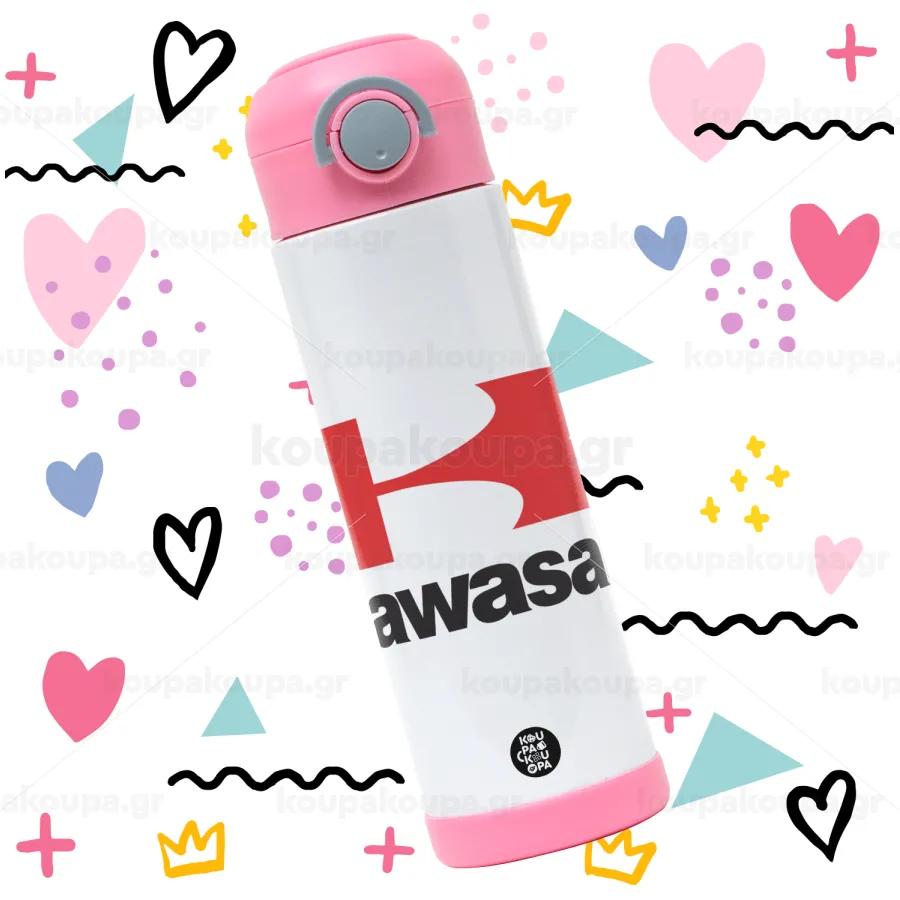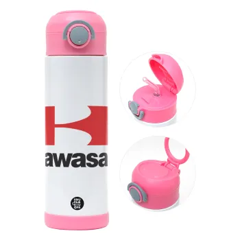 Kawasaki, Children's hot water bottle, stainless steel, with safety straw, PINK (500ml)