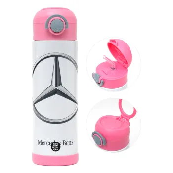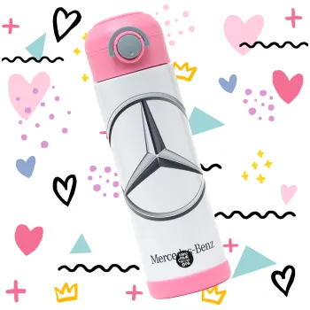 mercedes, Children's hot water bottle, stainless steel, with safety straw, PINK (500ml)