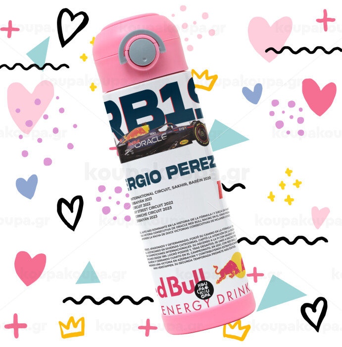 Redbull Sergio Perezi, Children's hot water bottle, stainless steel, with safety straw, PINK (500ml)