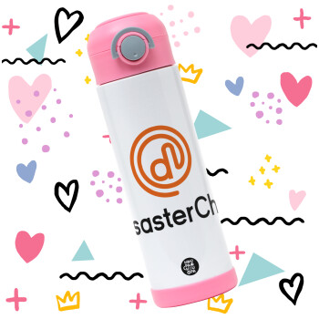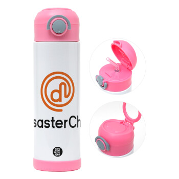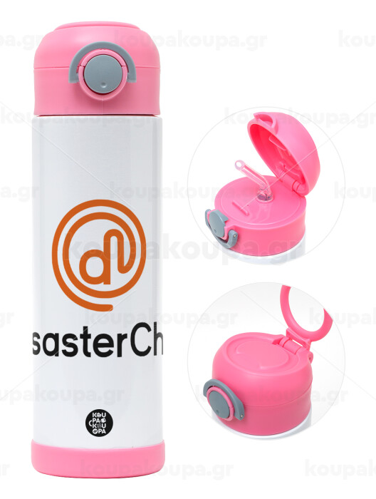 Disaster Chef, Children's hot water bottle, stainless steel, with safety straw, PINK (500ml)