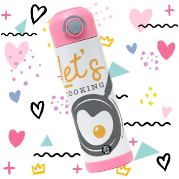 Let's cooking, Children's hot water bottle, stainless steel, with safety straw, PINK (500ml)