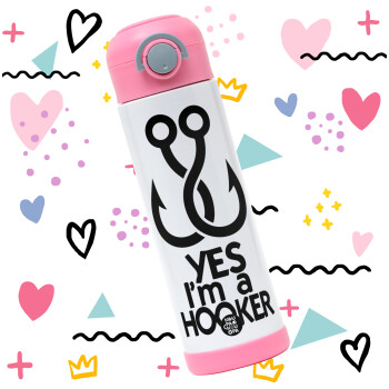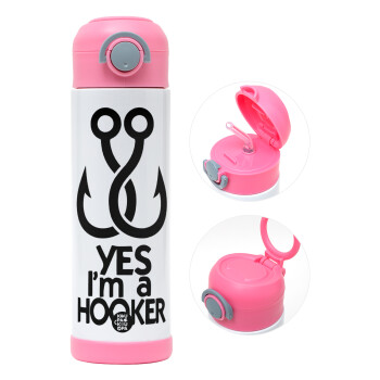 Yes i am Hooker, Children's hot water bottle, stainless steel, with safety straw, PINK (500ml)