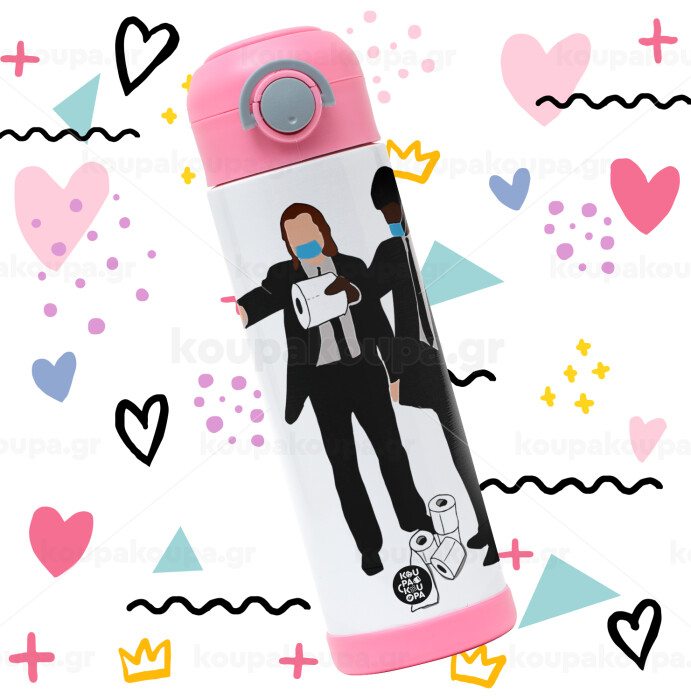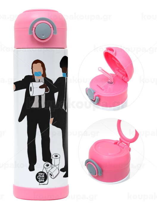 Pulp Fiction 3 meter away, Children's hot water bottle, stainless steel, with safety straw, PINK (500ml)