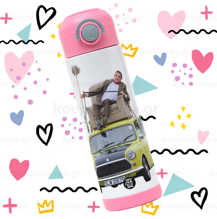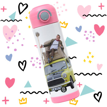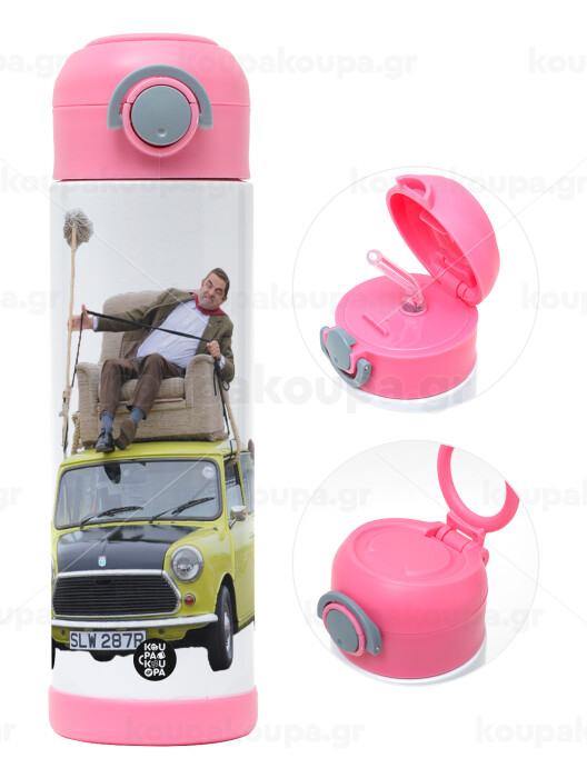 Mr. Bean mini 1000, Children's hot water bottle, stainless steel, with safety straw, PINK (500ml)