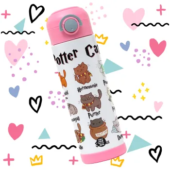 Potter Cats, Children's hot water bottle, stainless steel, with safety straw, PINK (500ml)
