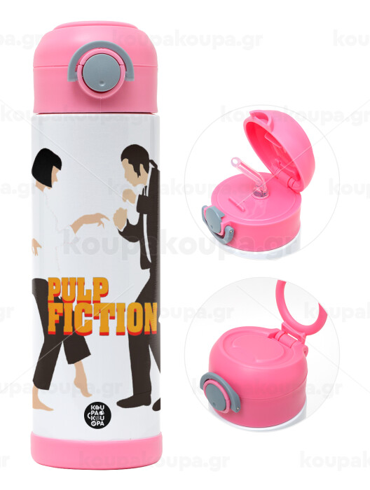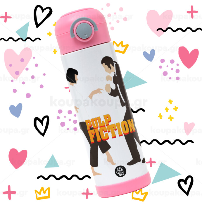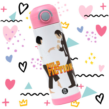 Pulp Fiction dancing, Children's hot water bottle, stainless steel, with safety straw, PINK (500ml)