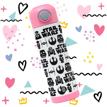 Star Wars Pattern, Children's hot water bottle, stainless steel, with safety straw, PINK (500ml)