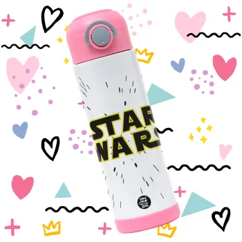 Star Wars, Children's hot water bottle, stainless steel, with safety straw, PINK (500ml)