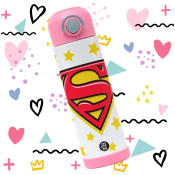 Superman Blue, Children's hot water bottle, stainless steel, with safety straw, PINK (500ml)