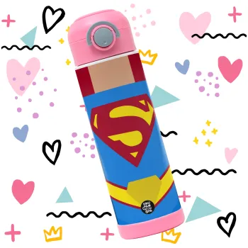Superman flat, Children's hot water bottle, stainless steel, with safety straw, PINK (500ml)