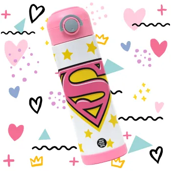 Superman Pink, Children's hot water bottle, stainless steel, with safety straw, PINK (500ml)