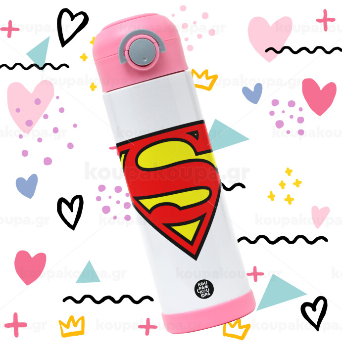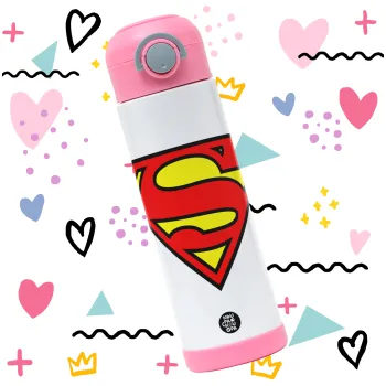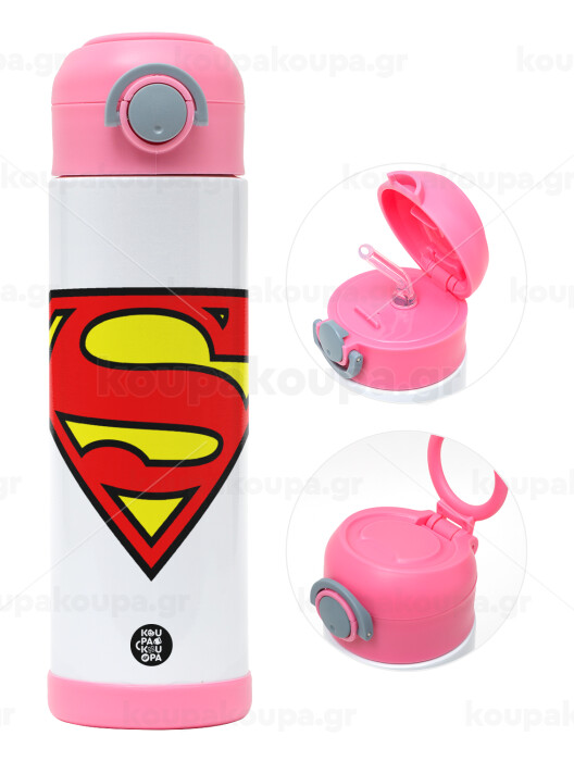 Superman vintage, Children's hot water bottle, stainless steel, with safety straw, PINK (500ml)